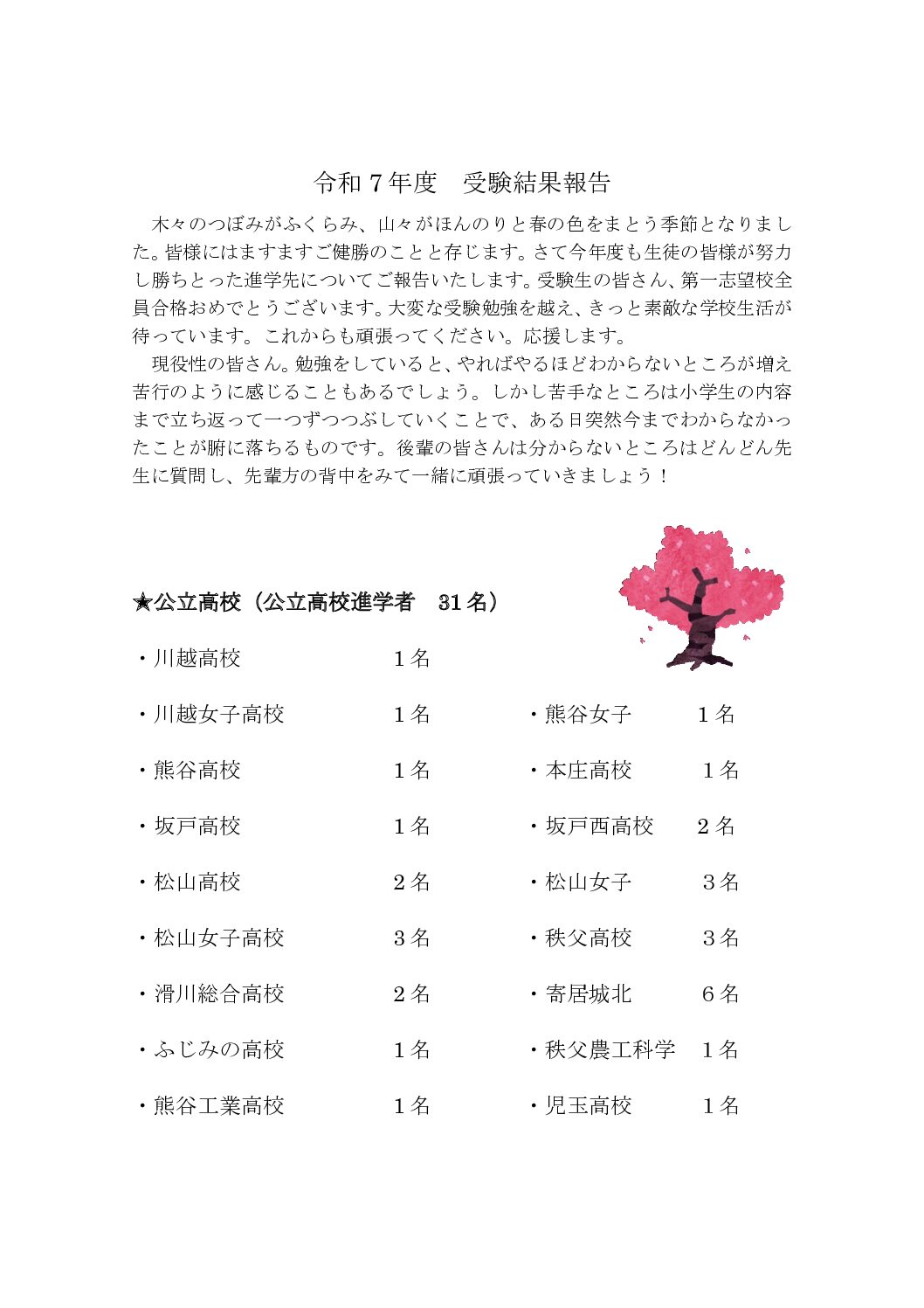 令和7年度入試結果報告
